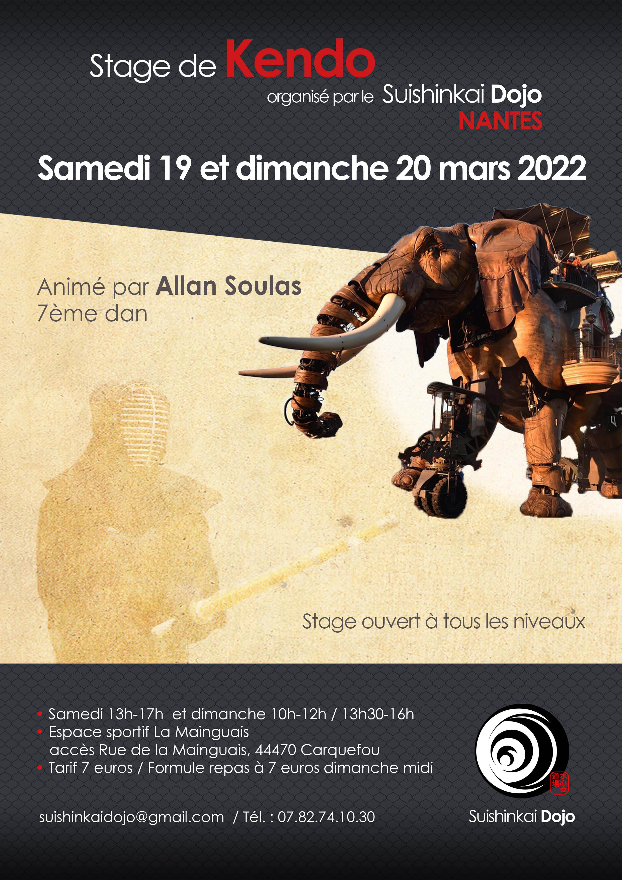 Plus d’informations ici sur le site officieil du dojo : http://www.suishinkai-dojo.fr/calendrier/stage-de-nantes-avec-allan-soulas/