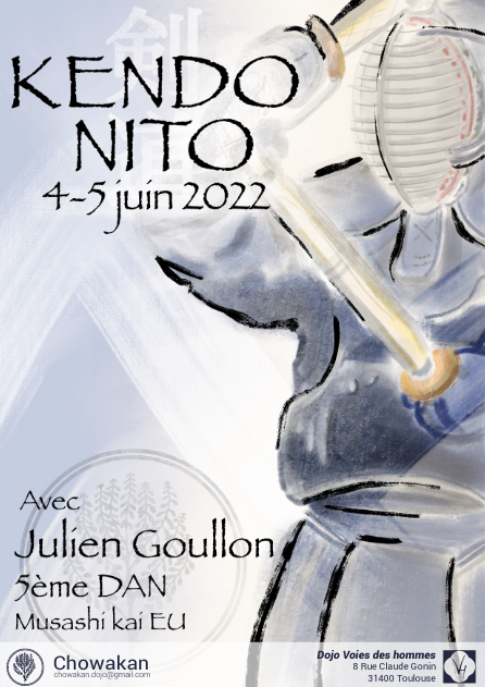Chowakan aura le plaisir d’organiser un stage de Kendo Nito dirigé par Julien Goullon, Kendo 5ème Dan et Heido 5ème Dan Musashi Kai EU, accompagné d’un de ses assistants.